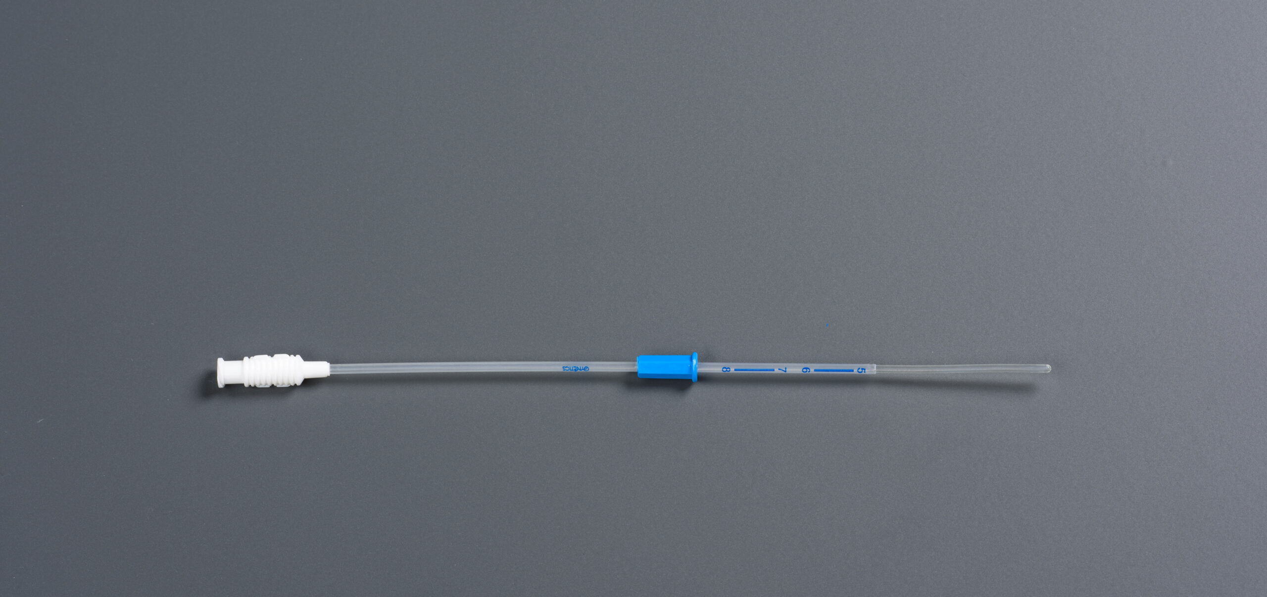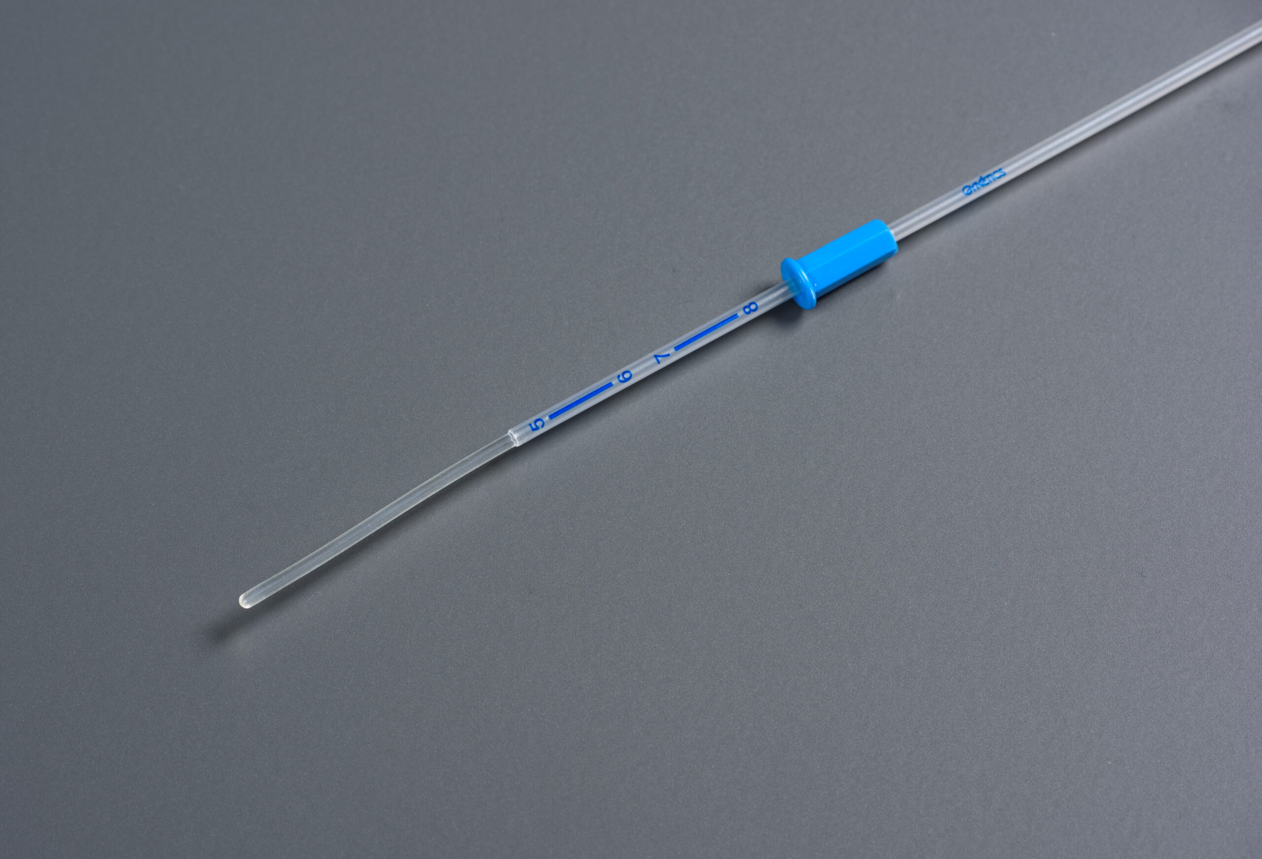 Alkionsiirtokatetri. Katetrin pituus 210 mm ja ulkohalkaisija 2 mm.