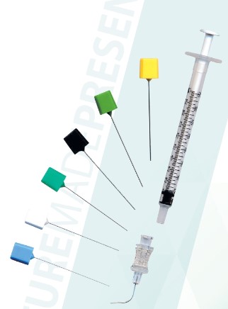 Galaktografiasetti: 30G taivutettu neula, dilataattorit 0.25mm ja 0.30mm, letku ja 1 ml ruisku.