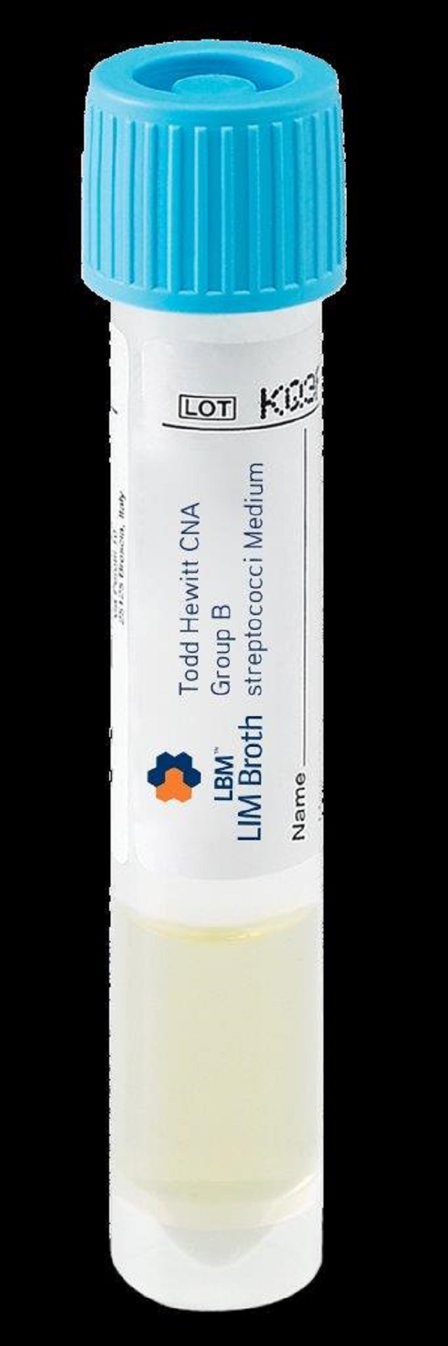 B-ryhmän streptokokin näytteenotto- ja kuljetusputkipakkaus. Näytteenottopakkaus sisältää medium-putken (2 ml Modified Cary-Blair) sekä yhden regular-nukkatikun. Vaaleansininen korkki.