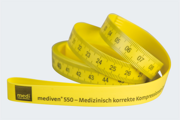 Medin keltainen mittanauha, jonka pituus on 250 cm. Ei veny. Mittanauhassa on pyöreät reunat, joten se tuntuu miellyttävämmältä ihoa vasten.