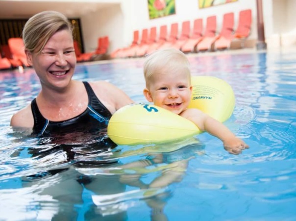 Ilmatäytteinen uimakauluri allasterapiaan. Kaulurin avulla voidaan varmistaa pään pysyminen pinnalla harjoittelun aikana.